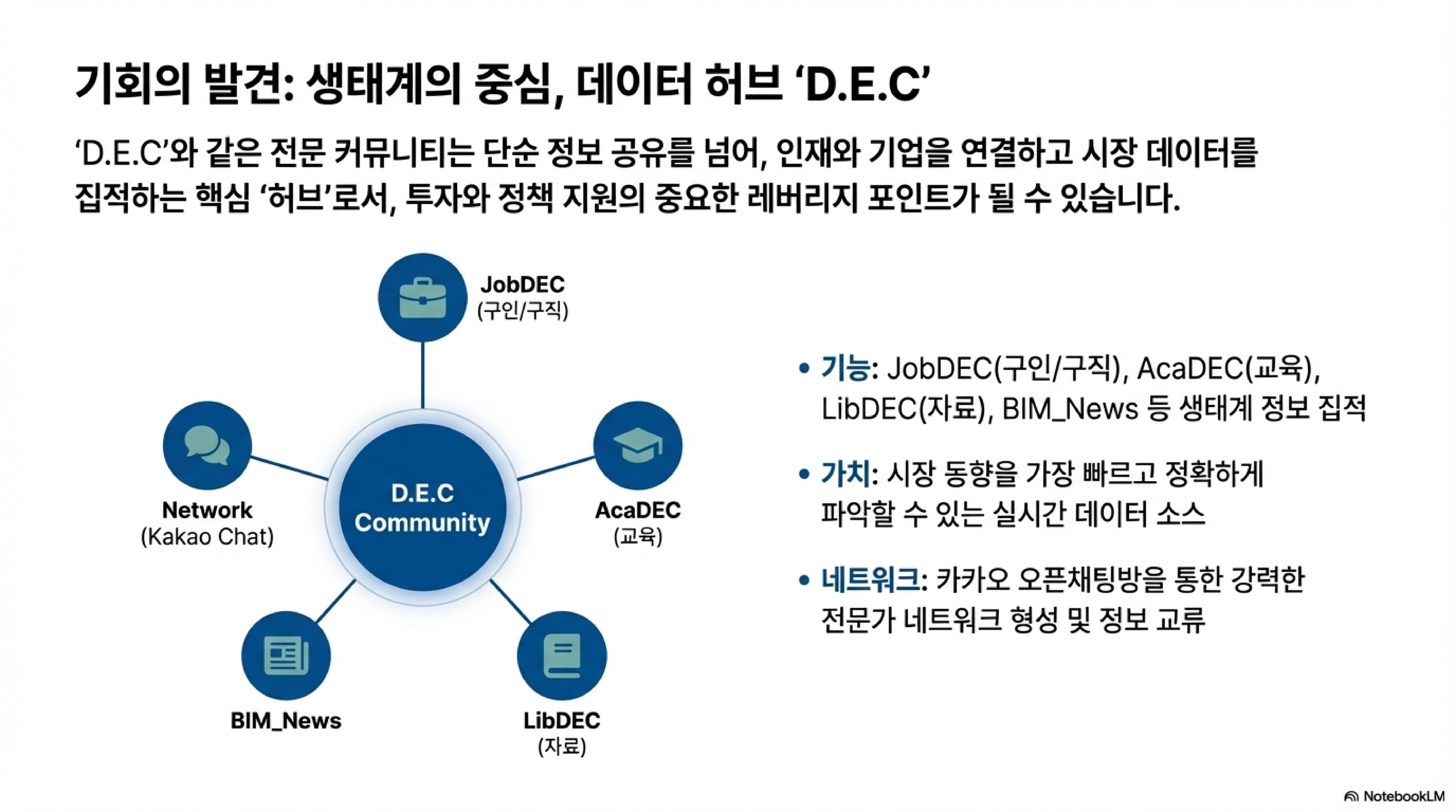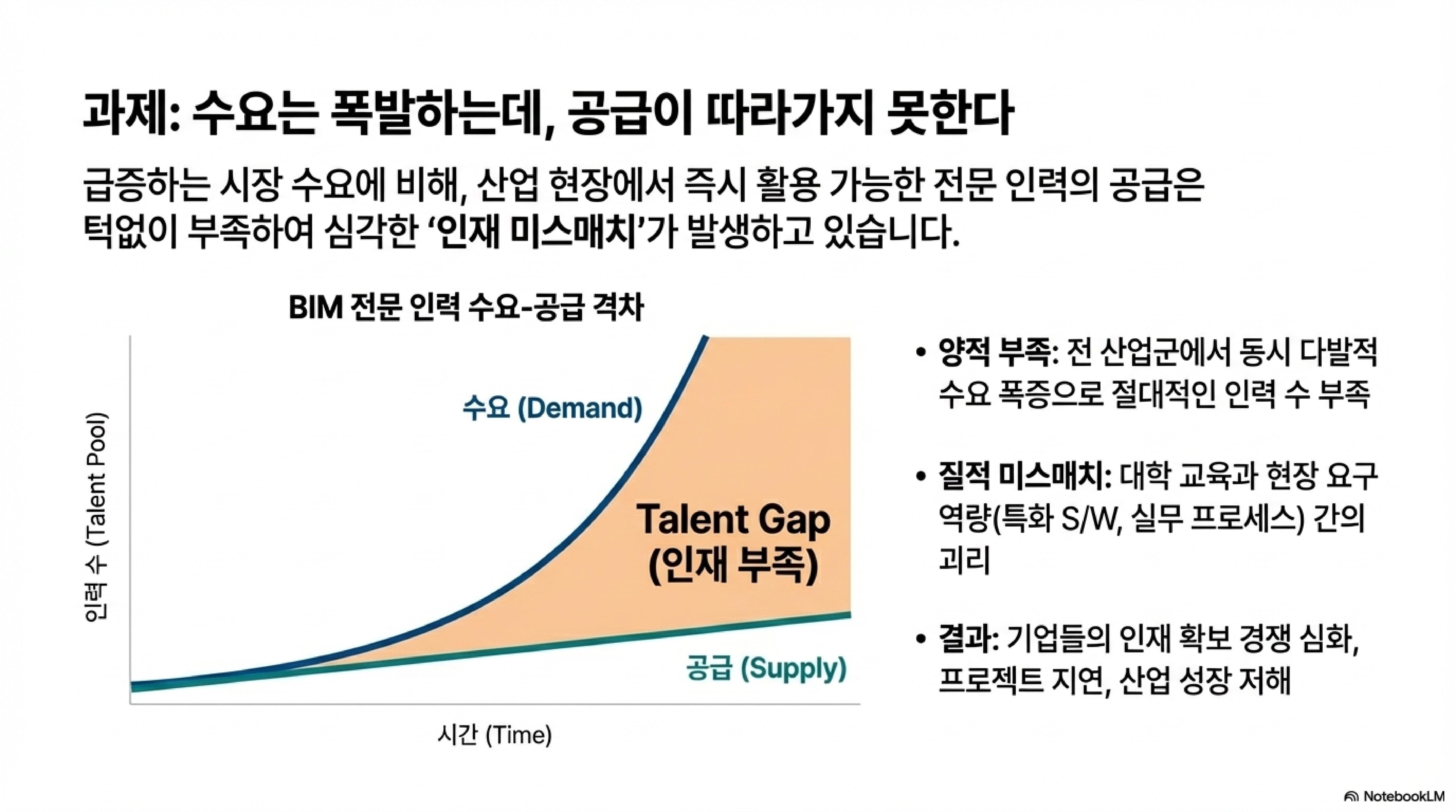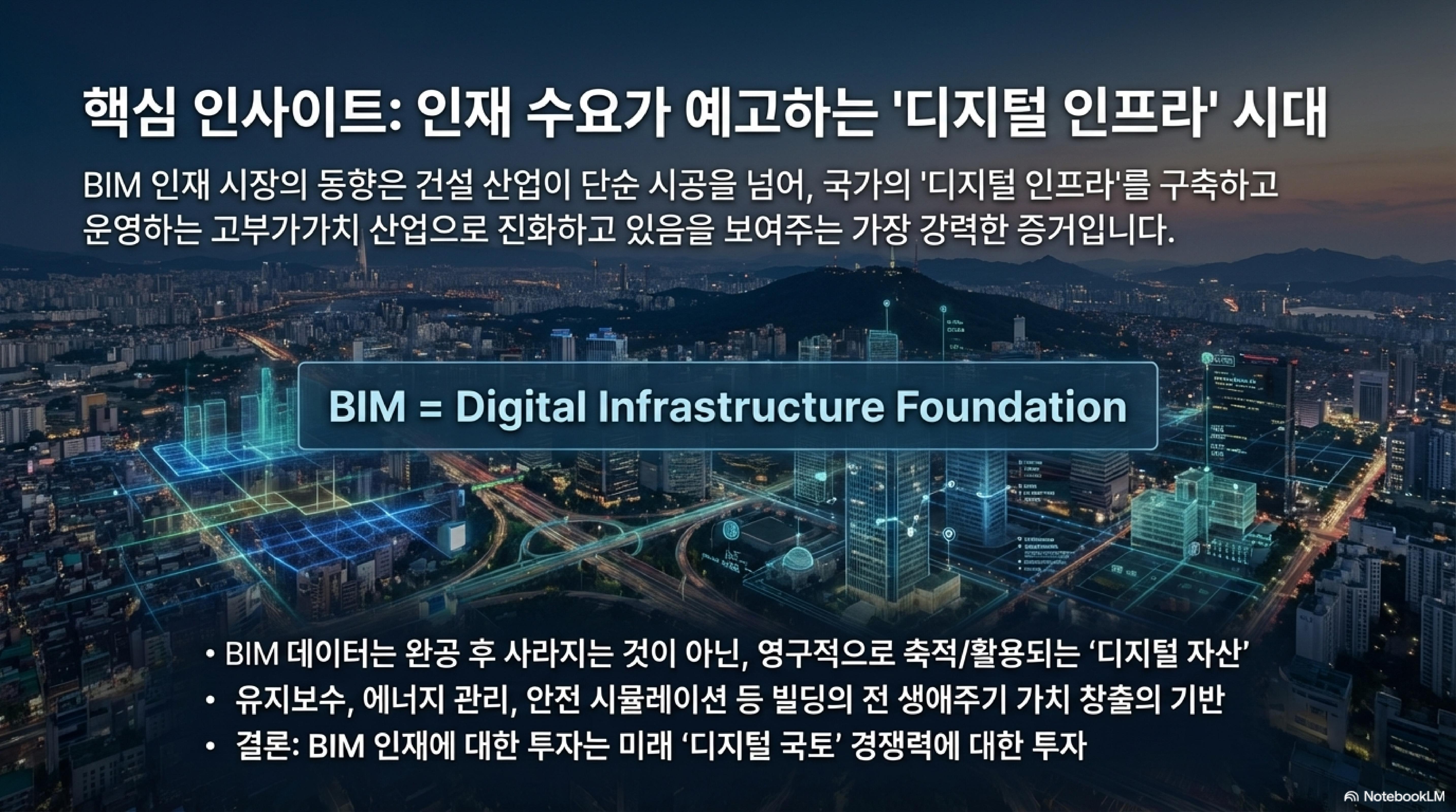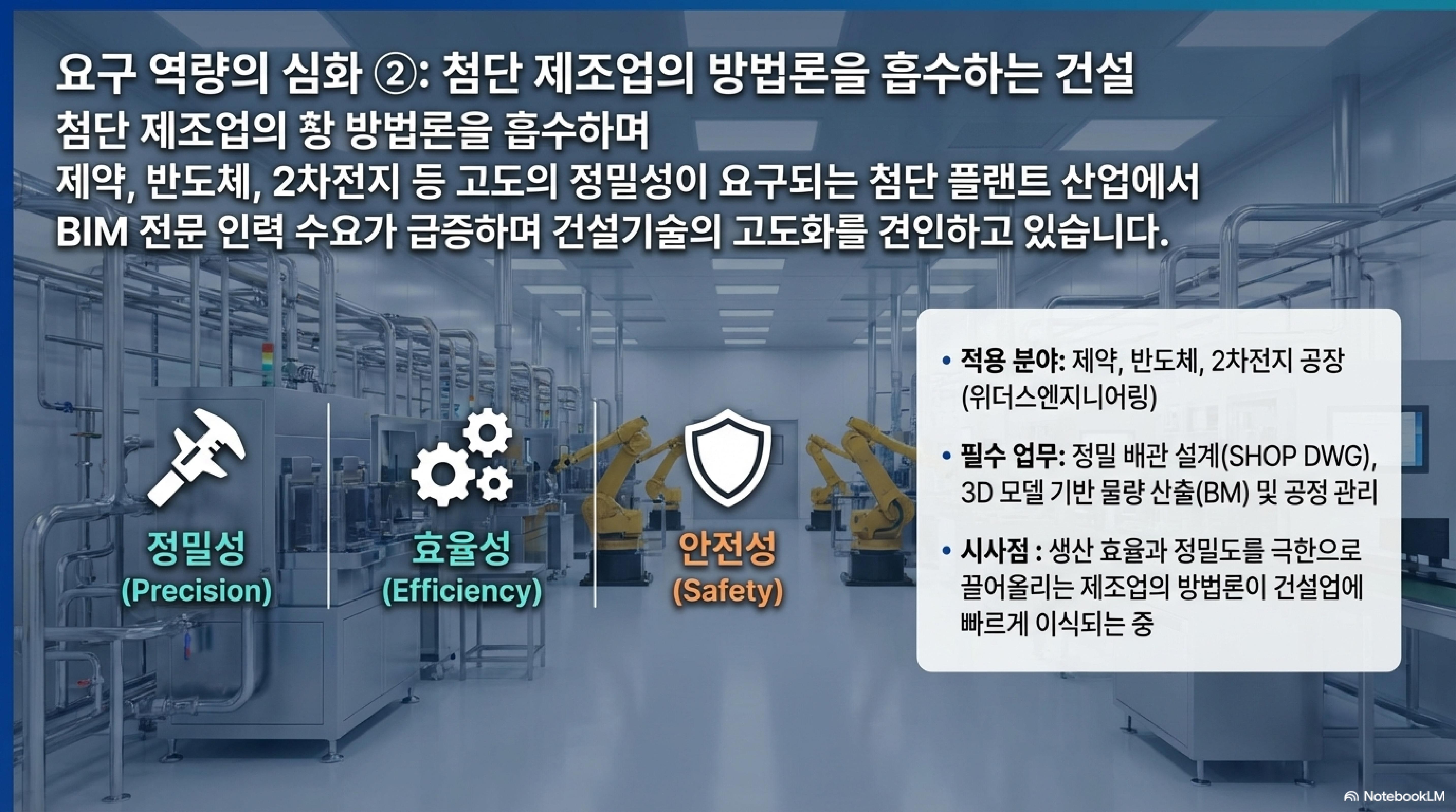 2025년 말 구인 공고의 공통점은 BIM 역량을 '기본 소양'으로 간주하기 시작했다는 것입니다. 이제는 3D 모델링 능력을 넘어 해석과 시뮬레이션 능력까지 요구하는 고도화 단계에 진입했습니다.