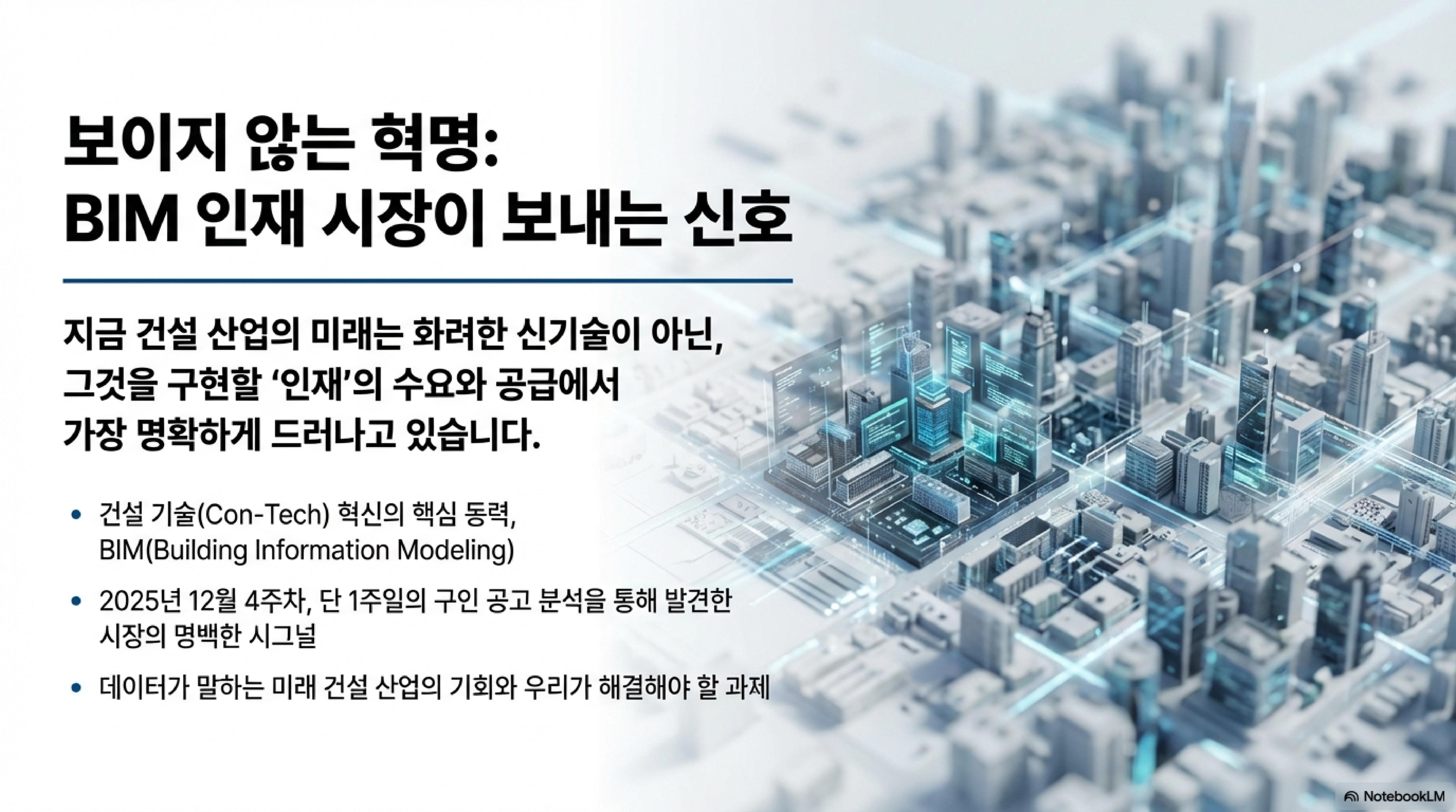 단순히 "도면을 잘 그린다"는 수준을 넘어, 이제는 데이터를 어떻게 활용하고 리스크를 어떻게 관리하느냐가 핵심입니다. 이번 글에서는 2025년 4분기 구인 데이터를 바탕으로 BIM 기술이 시장에서 어떤 가치를 인정받고 있는지, 그리고 왜 기업들이 앞다투어 투자를 늘리는지 자세히 파헤쳐보겠습니다!