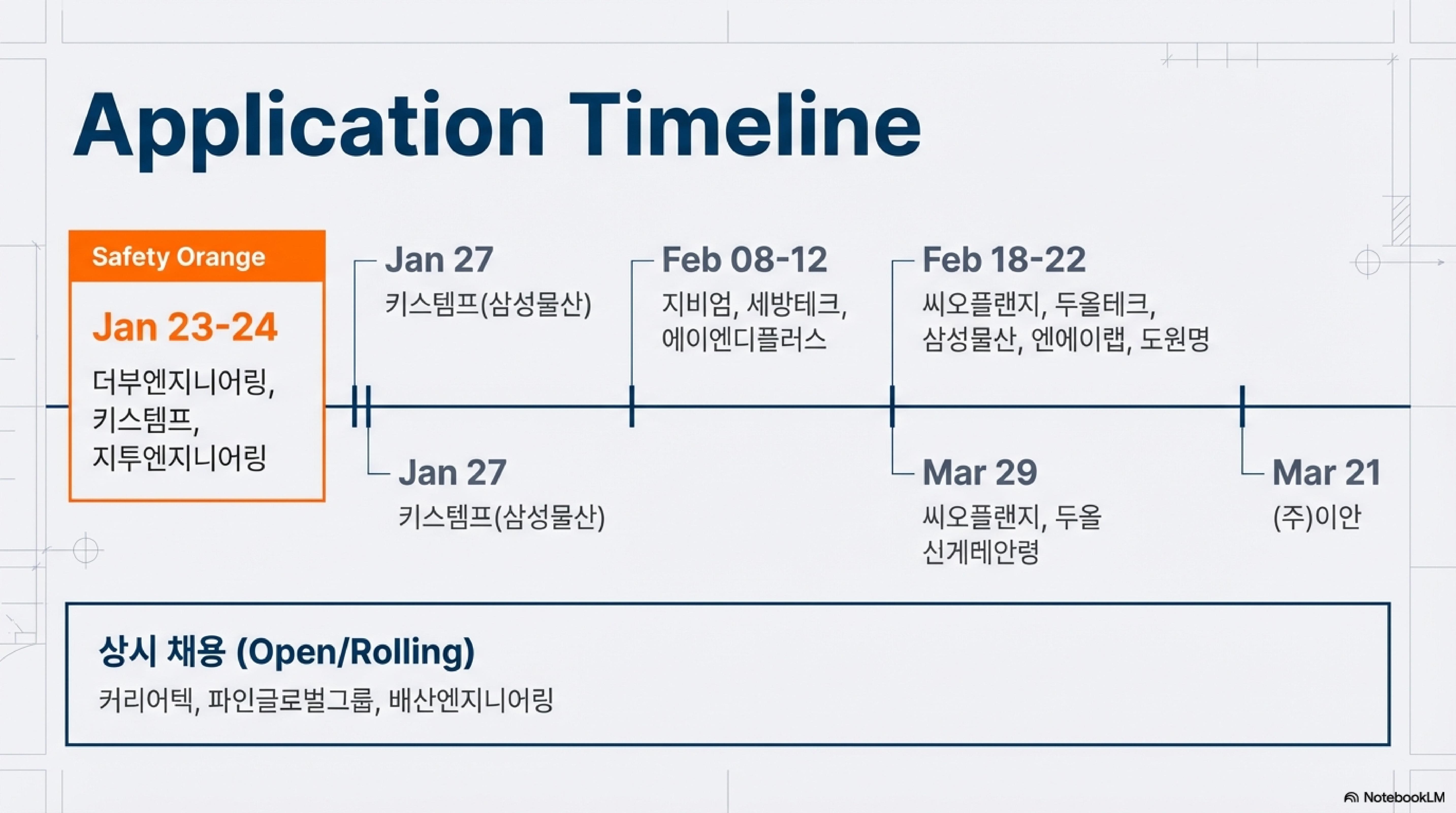 이번 주 눈여겨봐야 할 기업들의 공고 요약입니다. 마감 기한을 꼭 확인하세요!