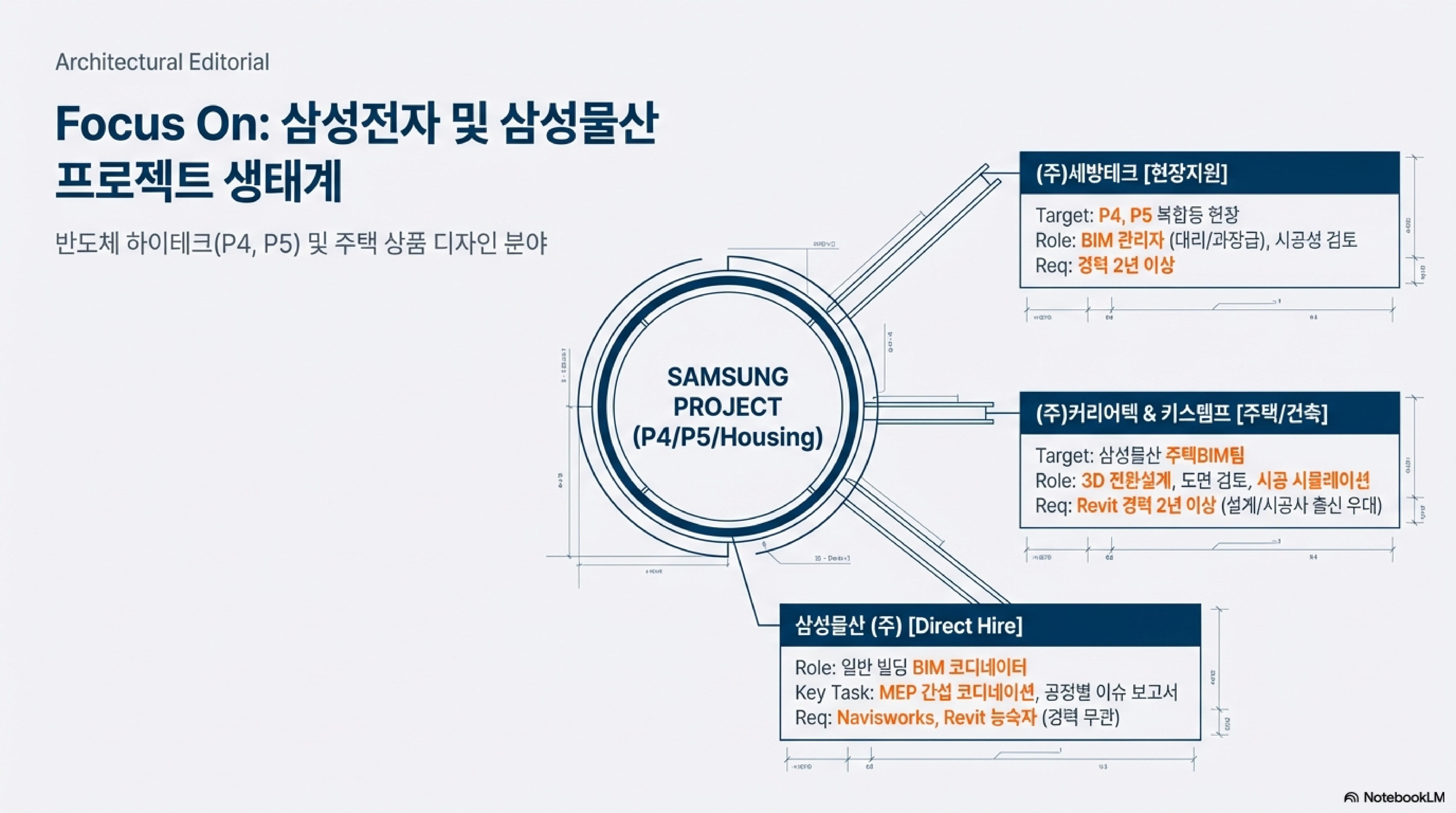 무엇보다 삼성 관련 프로젝트 비중이 높기 때문에, 반도체 플랜트 경험이 있다면 매우 유리한 고지를 점할 수 있을 것으로 보입니다.
