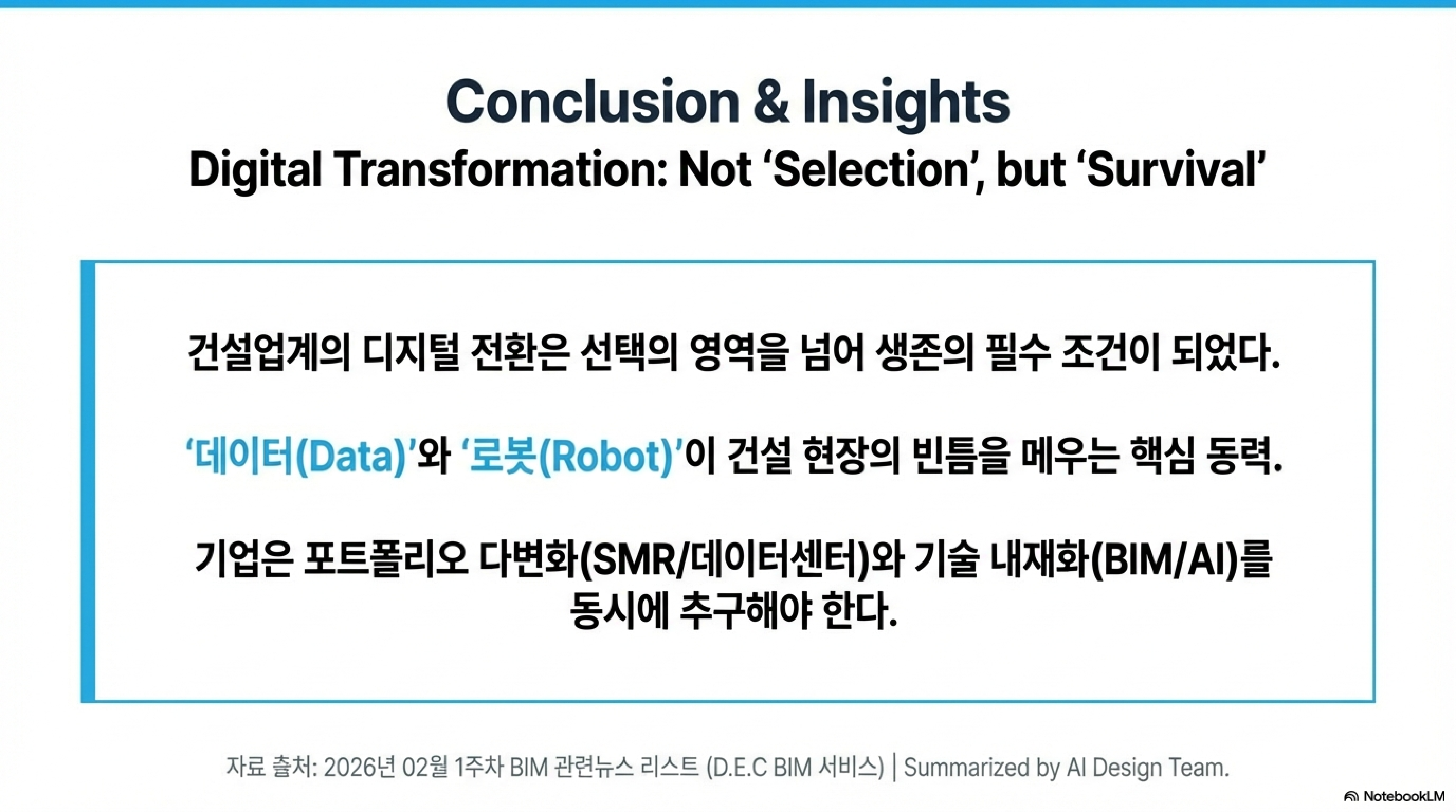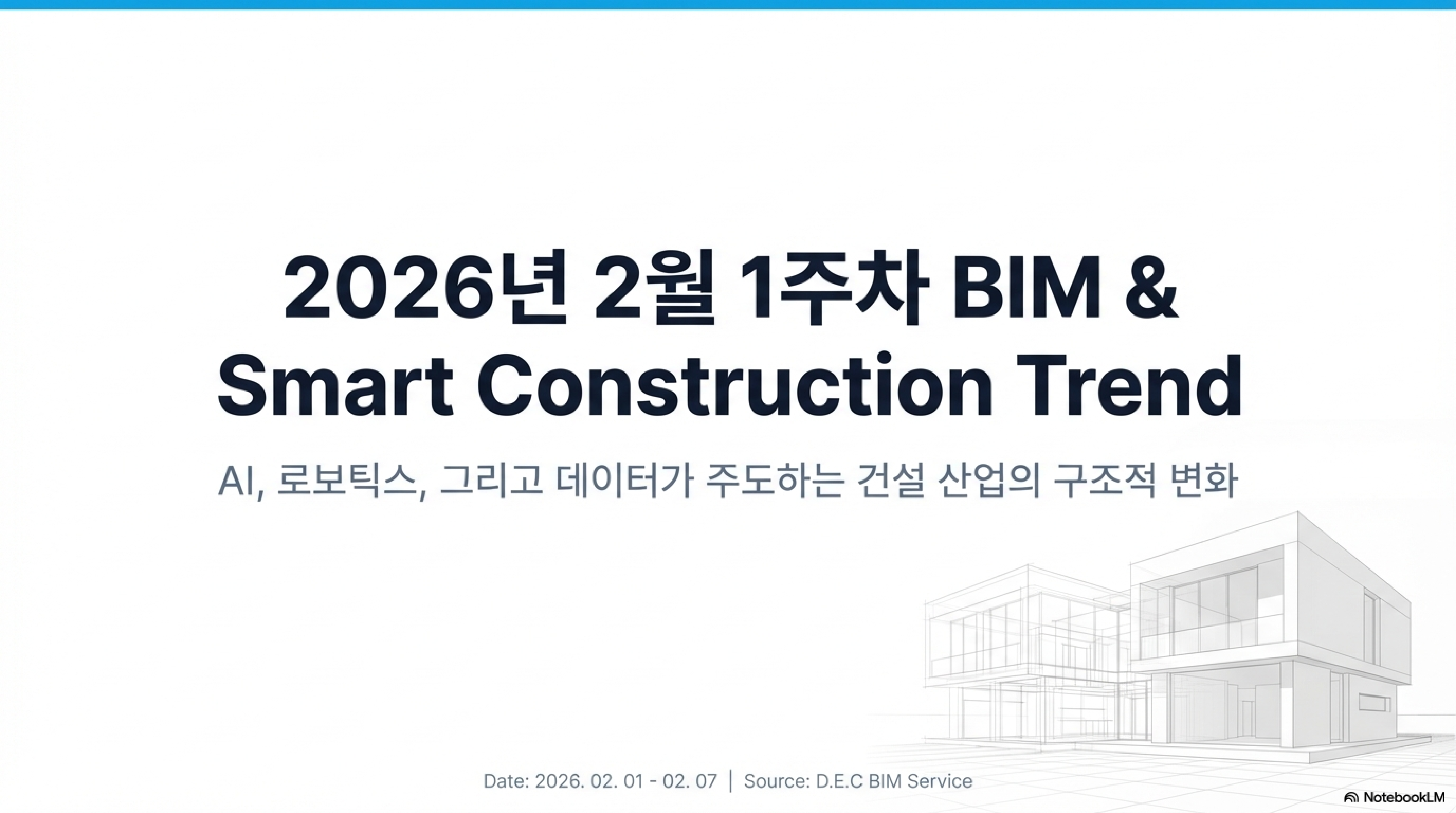 2026년 02월 1주차 BIM 관련 뉴스를 알려드립니다.02월01일 ~ 02월06일 까지 신규 등록된 뉴스 리스트 및 요약 입니다. 2026년 2월 1주차 BIM 및 스마트 건설 산업 동향 브리핑본 보고서는 2026년 2월 1주차(