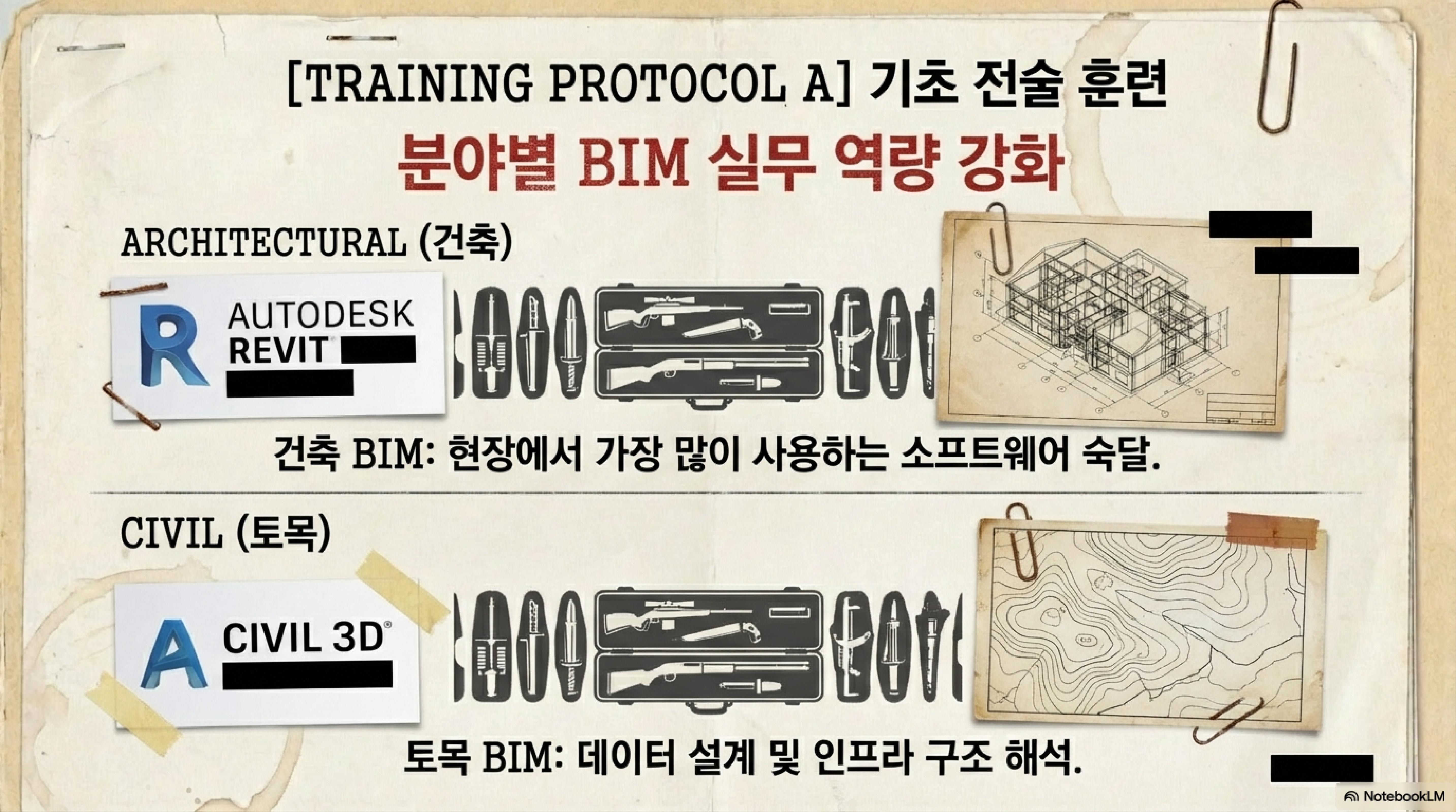 - 소프트웨어 활용: 건축 및 토목 현장에서 가장 빈번하게 사용되는 소프트웨어를 교육 도구로 채택하여 도구 활용 능력을 극대화한다.