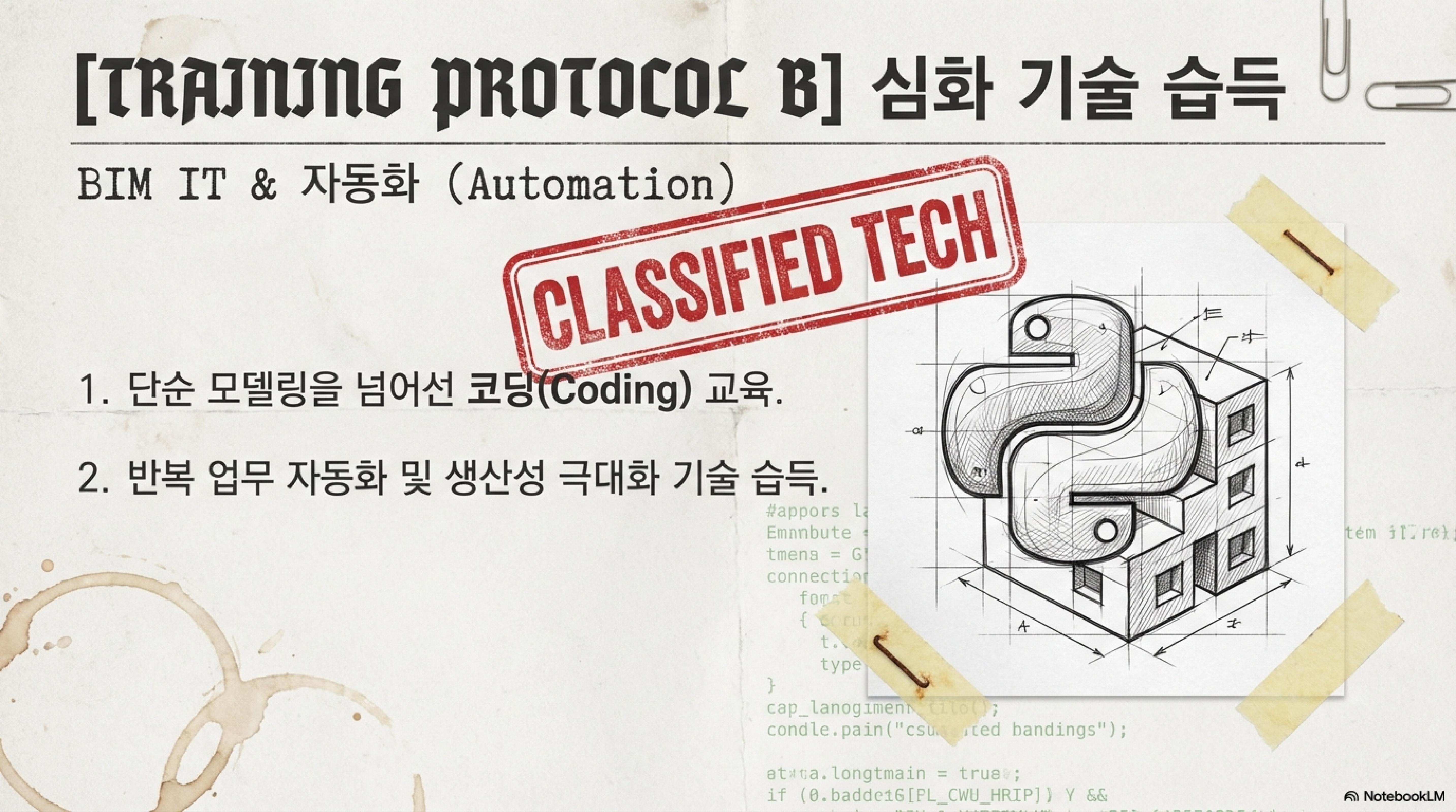 | BIM IT 과정 | 코딩을 활용한 공정 자동화 및 디지털 고도화 기술 습득 |