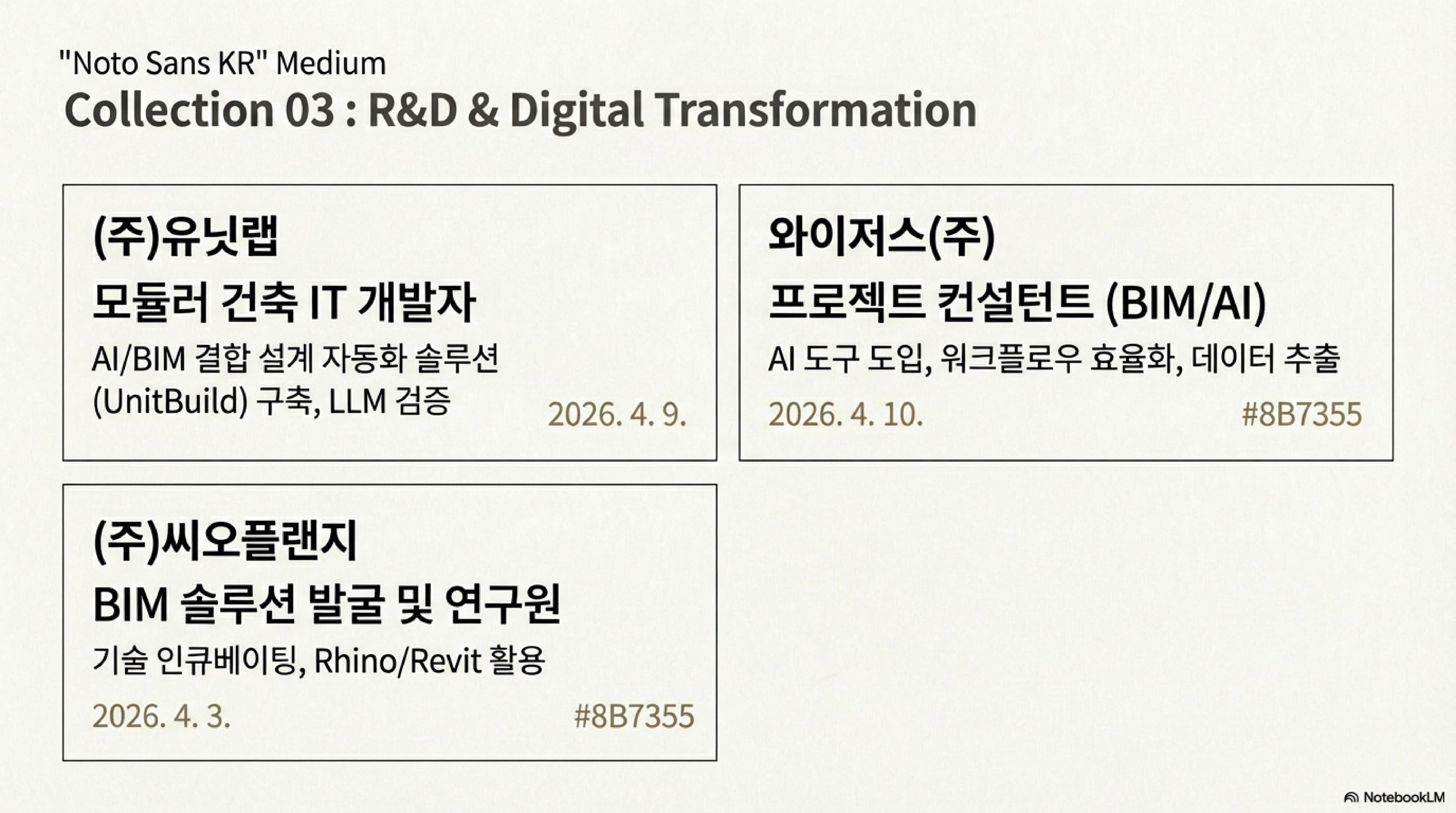 | ⓐBIM 구인 동향_2026년 01월 1주: SK하이닉스·새만금 현장 BIM 인력 급구! (1) | 2026.01.10 |