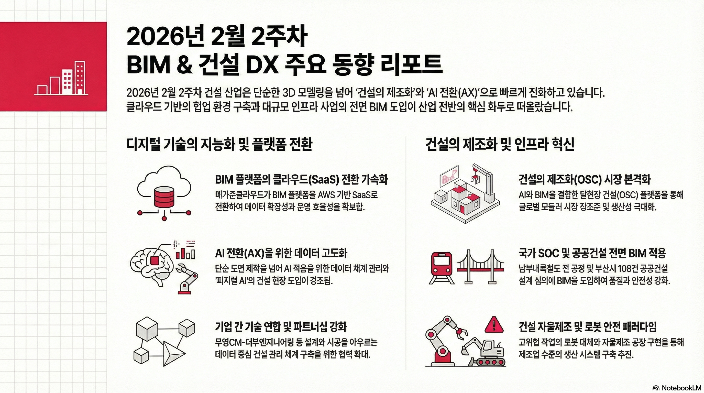 2026년 02월 2주차 BIM 관련 뉴스를 알려드립니다.02월09일 ~ 02월13일 까지 신규 등록된 뉴스 리스트 및 요약 입니다. 2026년 2월 2주차 BIM 및 건설 산업 기술 동향 브리핑요약 (Executive Summary)2026년 2월 2