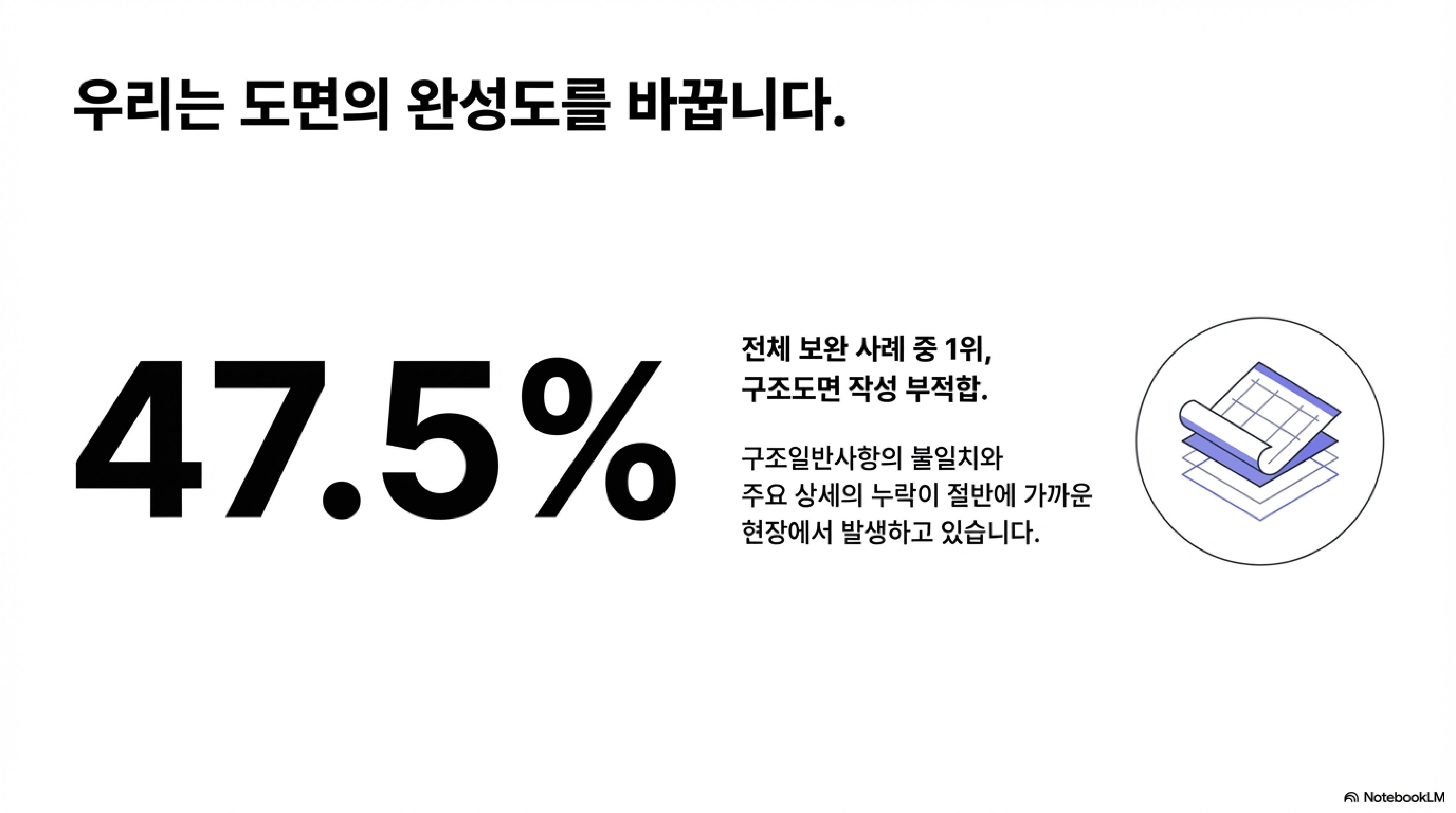 주목할 점은 최종 부적합 판정의 실질적인 사유 1위가 부재 설계 오류(22.9%)라는 점입니다. 이는 단순히 도면을 잘못 그린 것을 넘어, 구조 안전성 자체가 위협받고 있다는 신호로 해석될 수 있습니다.