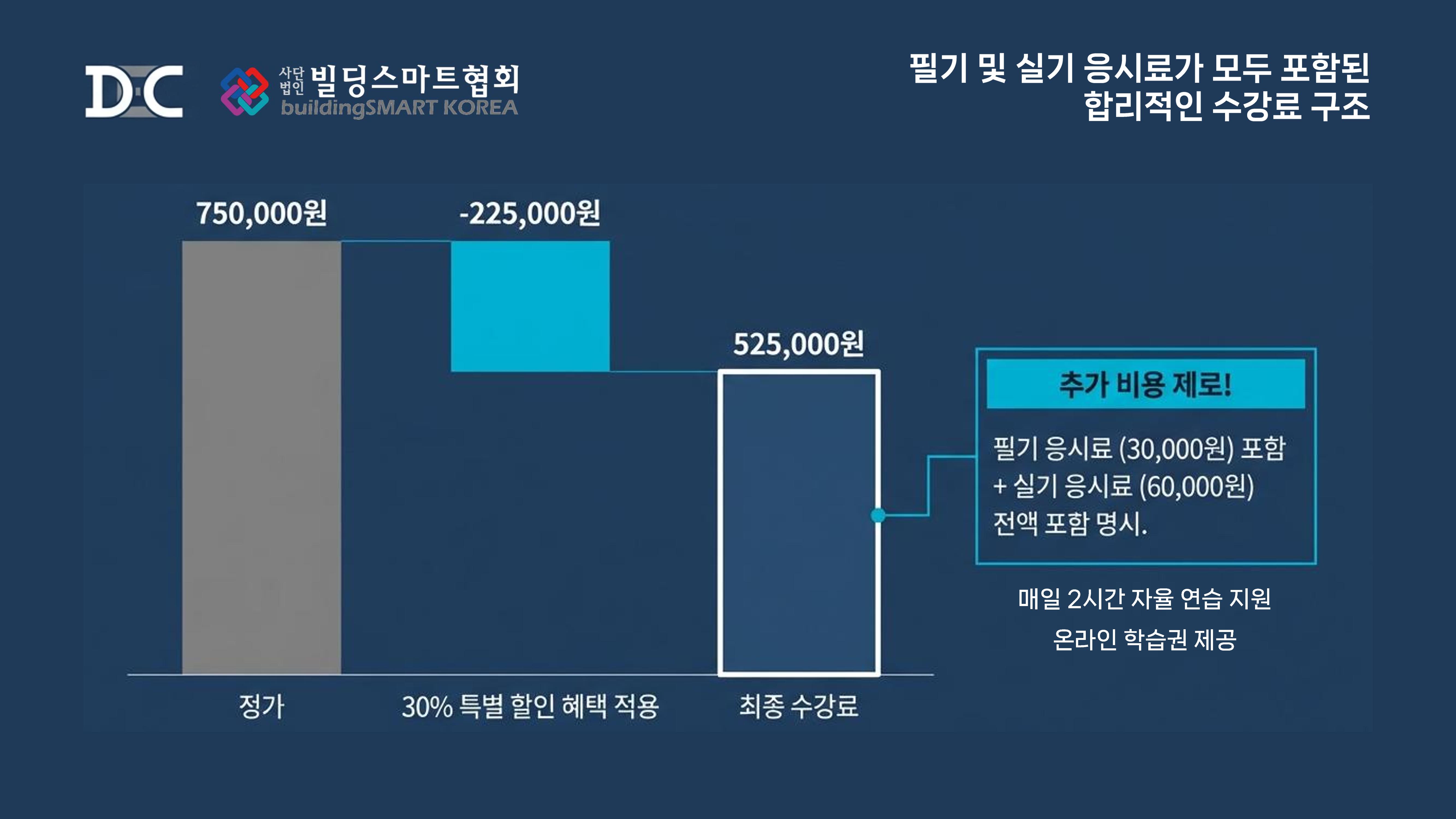 - 구성: 교육비 + 필기 응시료 + 실기 응시료 일체 포함.
