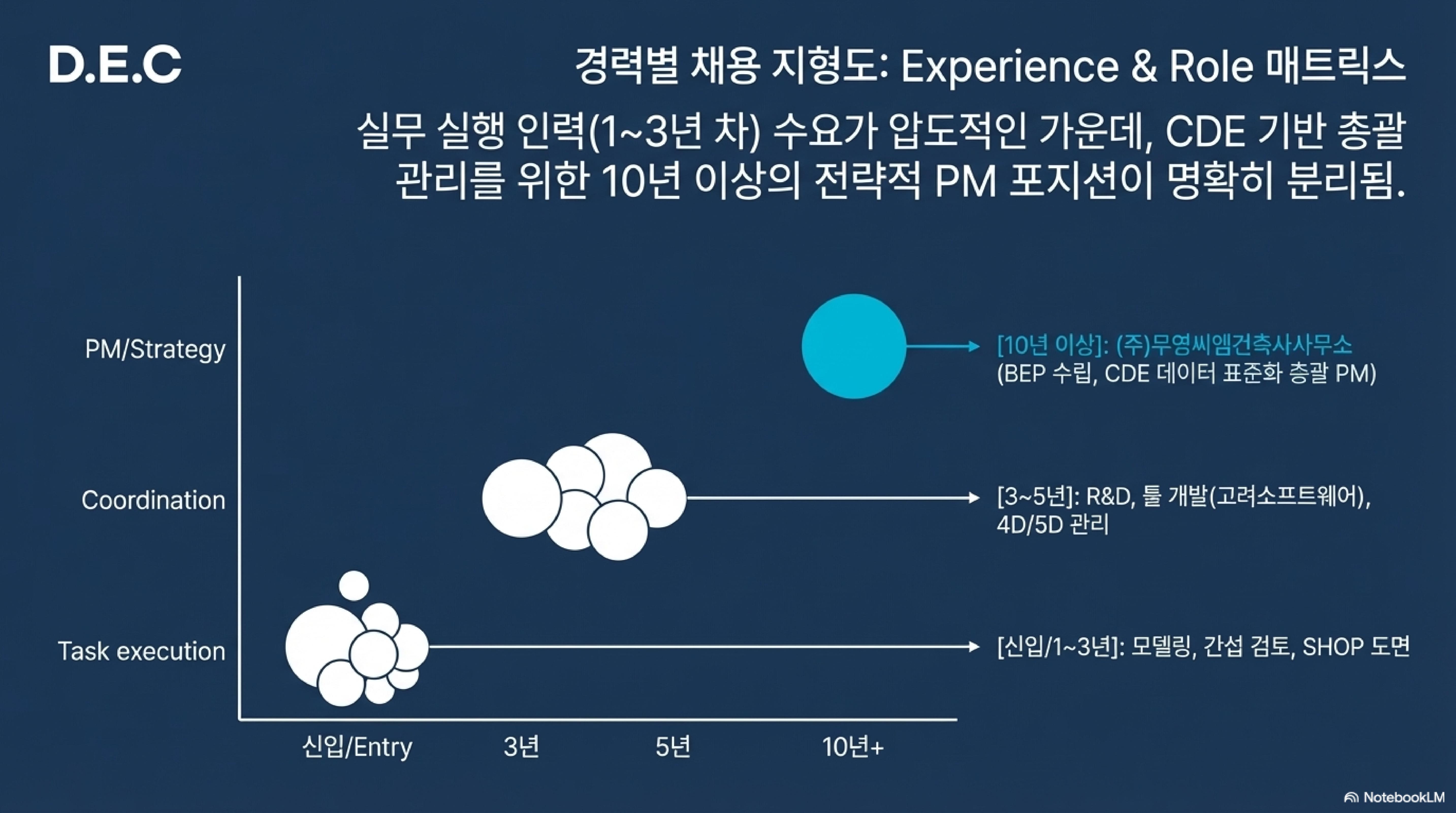 • • (주)무영씨엠건축사사무소: 10년 이상 경력의 BIM PM을 모집 중입니다. 스마트CM 그룹에서 품질 관리와 데이터 표준화를 총괄할 리더를 찾고 있네요.